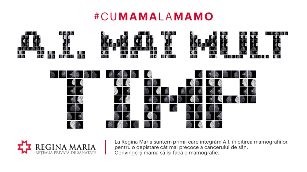 Campania #CuMamalaMamo ajunge la al patrulea an consecutiv, iar pentru al doilea an consecutiv, inițiativa permite abonaților REGINA MARIA să doneze integral mamografia anuală inclusă în abonament mamelor, soțiilor sau altor persoane dragi. Este mai mult decât un control medical – este un act de dragoste care poate transforma o statistică în timp câștigat alături de familia ta. Atât abonatele, cât și abonații pot dona mamografia pe http://www.reginamaria.ro/mama-la-mamo