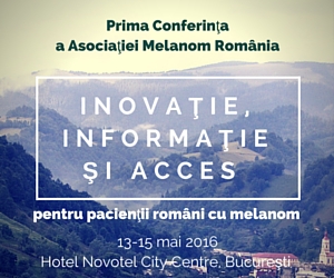 Asociaţia Melanom România organizează prima sa conferinţă cu tema ''Inovaţie, informaţie şi acces pentru pacienţii români cu melanom'', care va fi planificată în weekend-ul 13-15 mai 2016, la hotelul Novotel, Bucureşti. Conferinţa va reuni o audienţă formată din pacienţi şi famillile lor, reprezentanţi ai pacientilor, medici, cercetători, autorităţi, companii farmaceutice şi presă. Pe lângă scopul educativ-informativ, conferinţa atrage atenţia asupra situaţiei dramatice a pacienţilor cu melanom avansat din ţara noastră. Problemele de fond ale pacienţilor, date de un sistem de sănătate dezorganizat şi subfinanţat sunt amplificate în mod extrem de lipsa informaţiilor, a programelor de prevenţie şi detectare timpurie a cancerului, ca şi a tratamentelor eficace pentru melanom. Evenimentul are şi rolul de a facilita colaborări cu alte părţi interesate, în vederea identificării unor soluţii concrete, care să îmbunătăţească situaţia actuală a pacienţilor români.