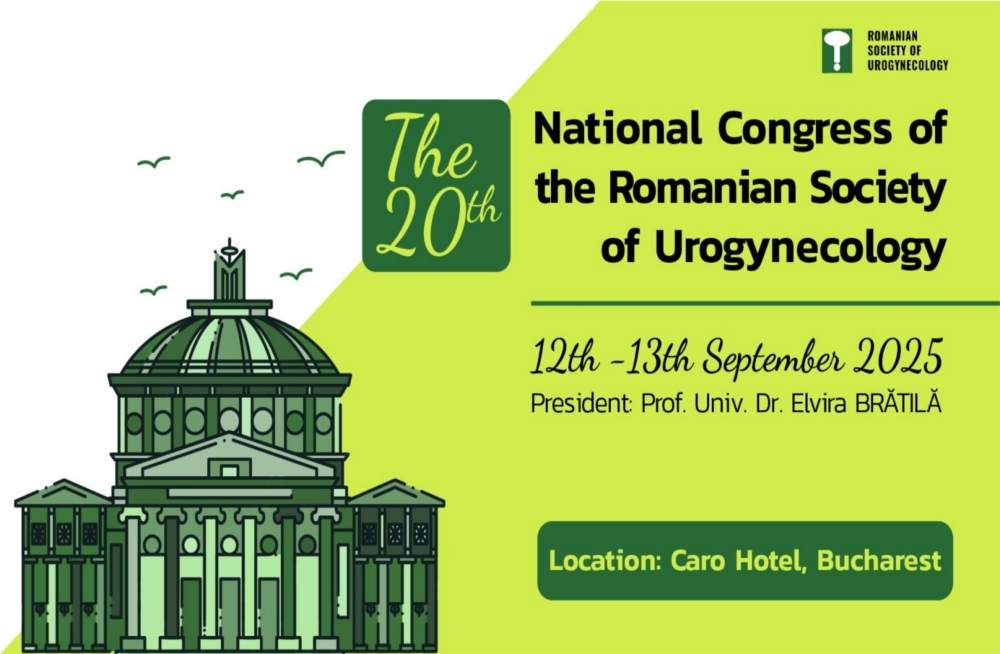 It is my great pleasure to invite you to attend the 20th National Congress of the Romanian Society of Urogynecology, which will take place on September 12–13, 2025, at Hotel Caro in Bucharest.