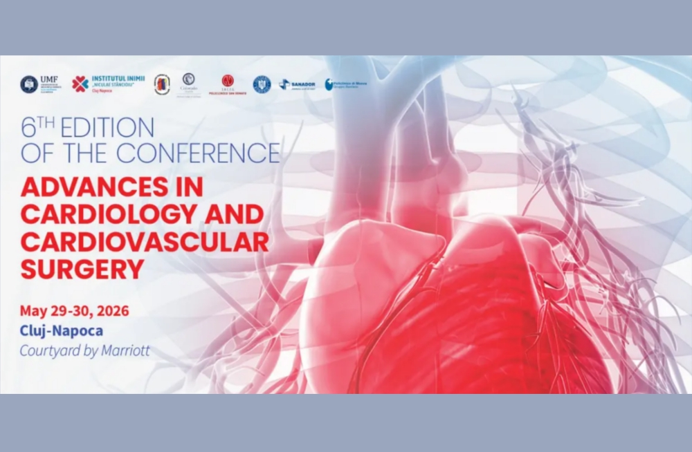 Afisari: 44Conferința Națională privind „Progrese în Cardiologie și Chirurgie Cardiovasculară” este programată pentru 29-30 mai 2026, la Hotelul Courtyard by Marriott din Cluj-Napoca, România.