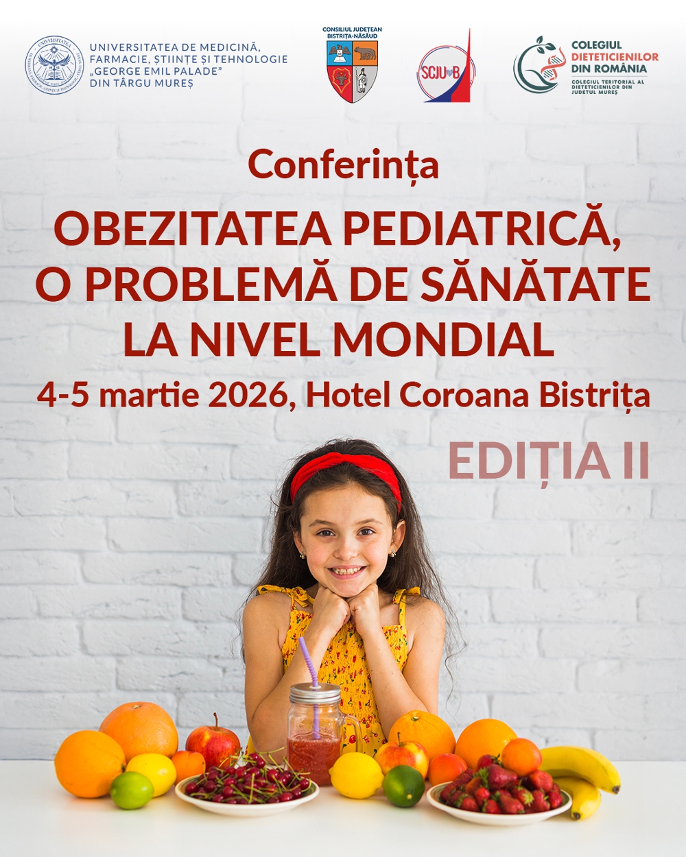 Afisari: 4UMFST G.E. Palade Târgu Mureș anunță organizarea, în perioada 4–5 martie 2026, a celei de-a doua ediții a Conferinței „Obezitatea pediatrică, o problemă de sănătate la nivel mondial”.