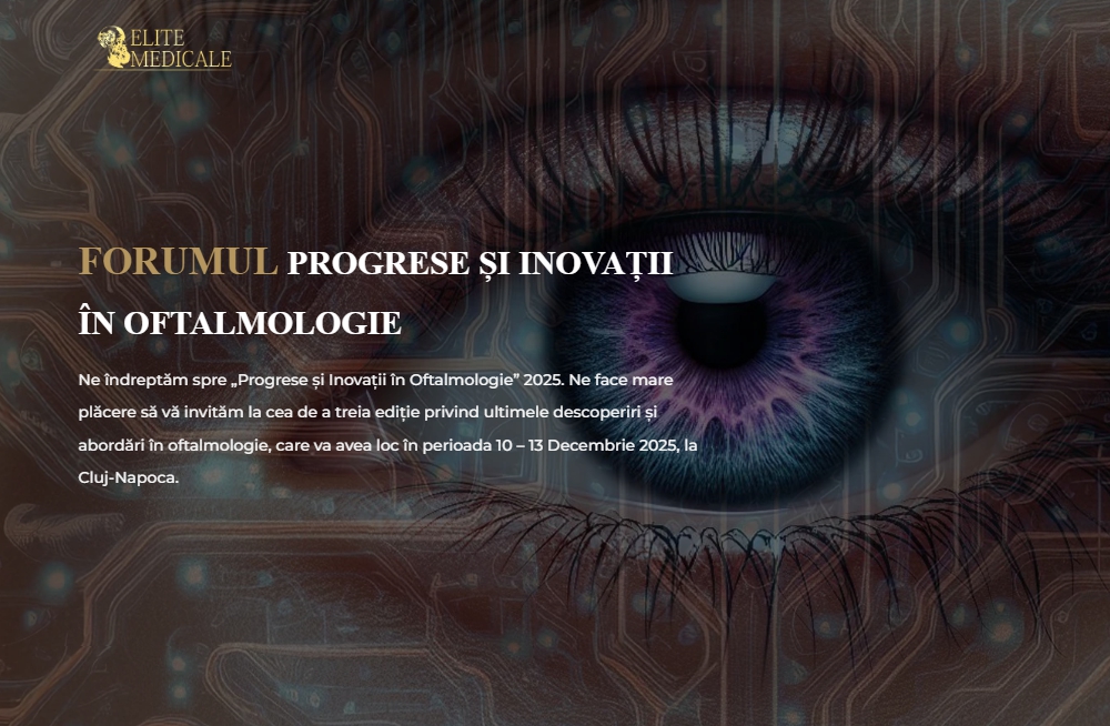 Suntem bucuroși să anunțăm că, după impactul pozitiv al primelor două ediții, ne îndreptăm spre „PROGRESE ȘI INOVAȚII ÎN OFTALMOLOGIE” 2025. Ne face mare plăcere să vă invităm la cea de a treia ediție privind ultimele descoperiri și abordări în oftalmologie, care va avea loc în perioada 10 – 13 Decembrie 2025, la Cluj-Napoca.