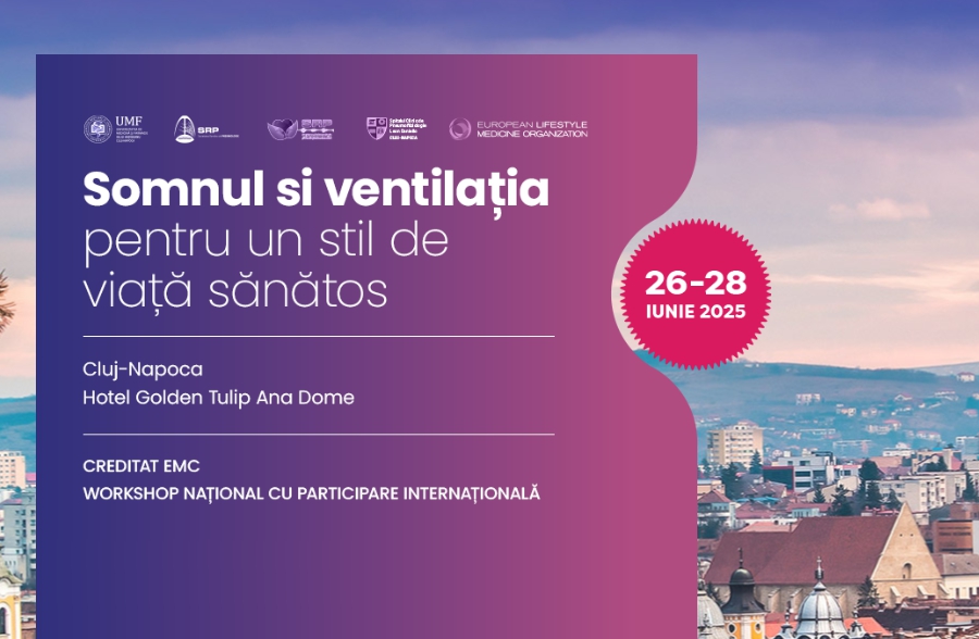 În numele Comitetului de Organizare, avem deosebita plăcere de a vă invita la Workshopul național cu participare internațională – Somnul și Ventilația pentru un stil de viață sănătos!, care va fi organizat la Cluj-Napoca, Hotel Golden Tulip Ana-Dome, în perioada 26-28 iunie 2025.